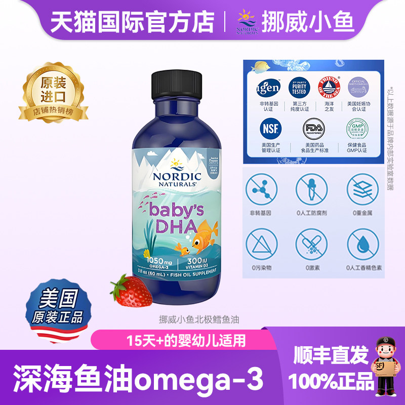 美国挪威小鱼婴儿童宝宝rTG加强版高纯度DHA婴幼儿深海鱼油60ml