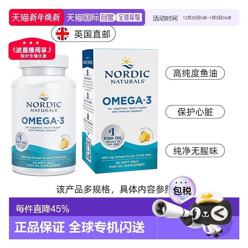 欧洲直邮NordicNaturals挪威小鱼深海鱼油高纯度Omega3高吸收rtg