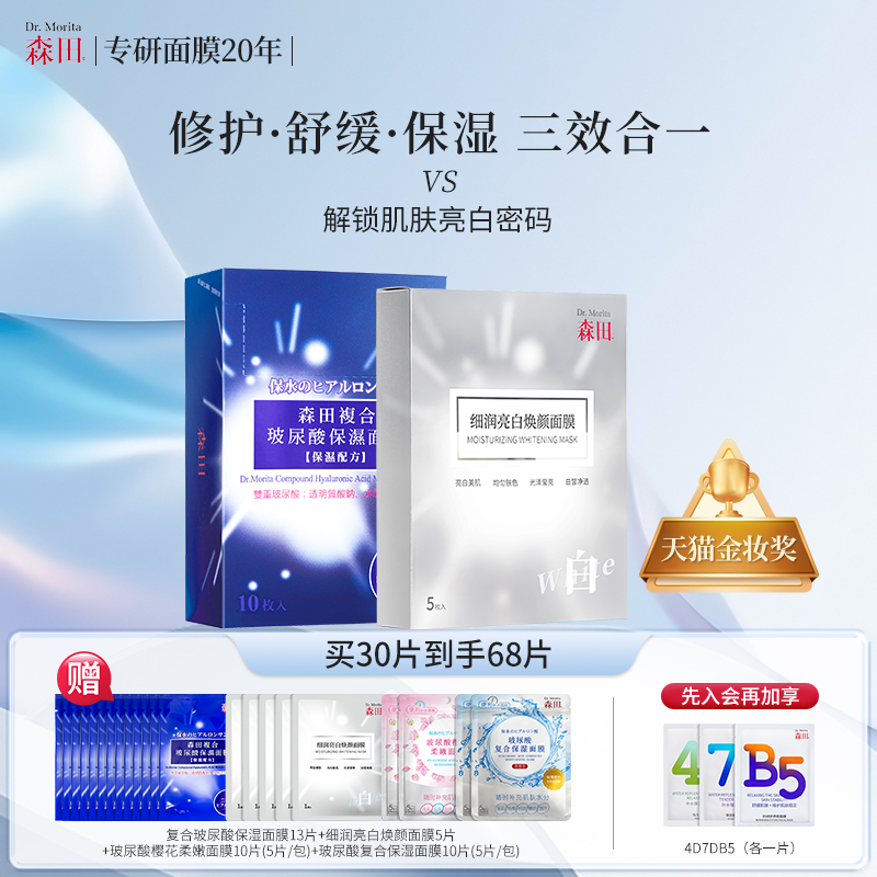 森田细润亮白焕颜面膜+复合玻尿酸保湿组合美白淡斑改善暗沉补水