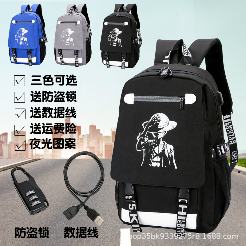 海贼王卡通乔巴白胡子动漫周边背包书包双肩包男女小学生夜光初中