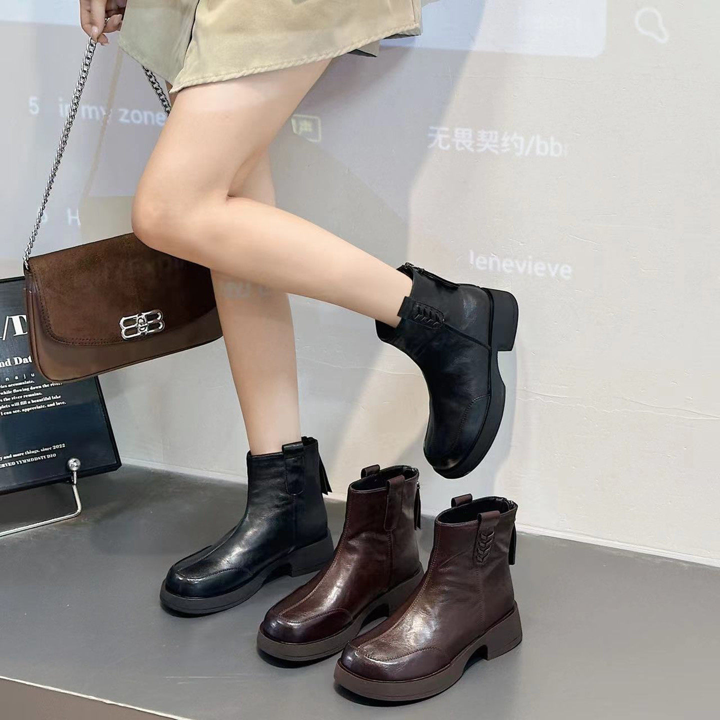 马丁靴女真皮平底切尔西短靴2025年秋冬新款英伦风复古软皮后拉链