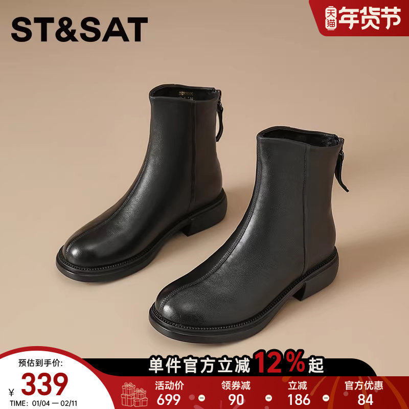 星期六马丁靴女真皮秋冬新款英伦风平底复古软皮后拉链切尔西短靴