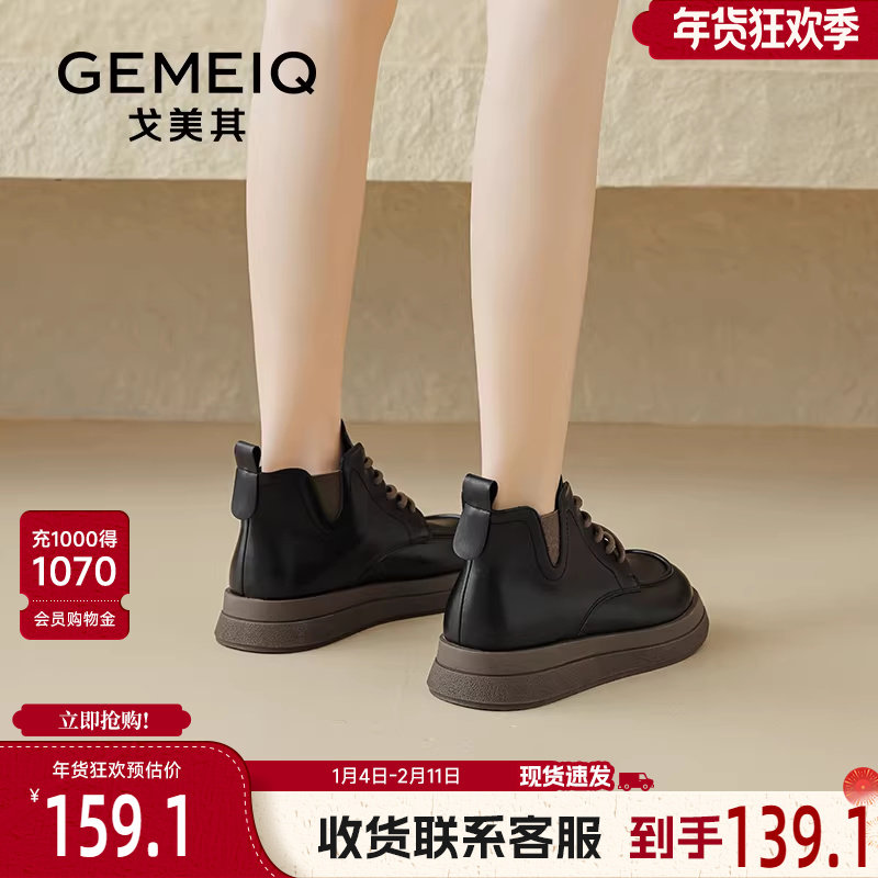 戈美其厚底马丁靴2024春秋新款单靴平底炸街英伦风靴子女加绒短靴