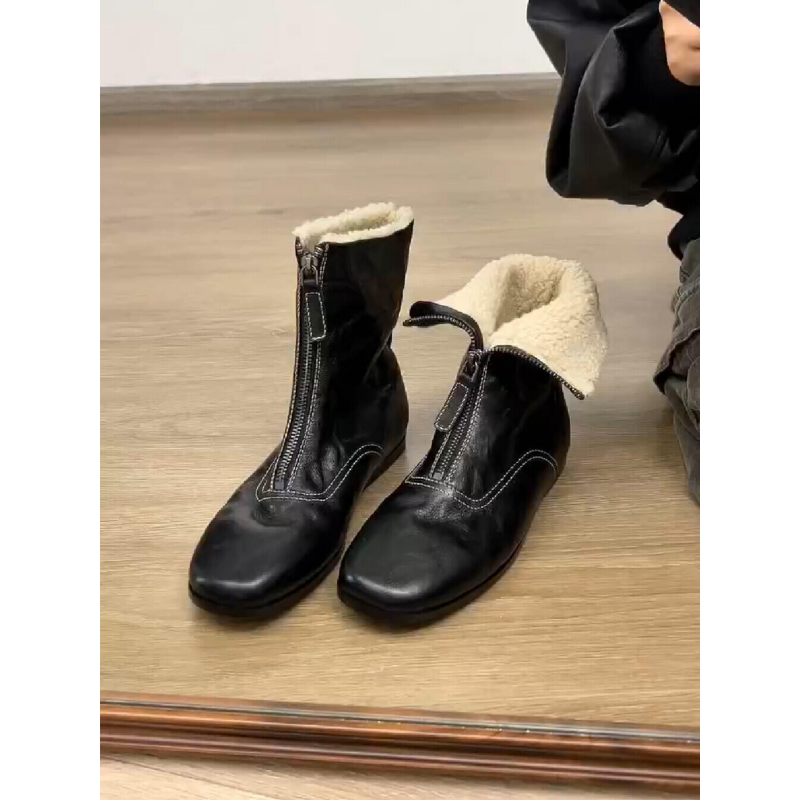 马丁靴女真皮2025年秋冬新款英伦风平底复古软皮后拉链切尔西短靴
