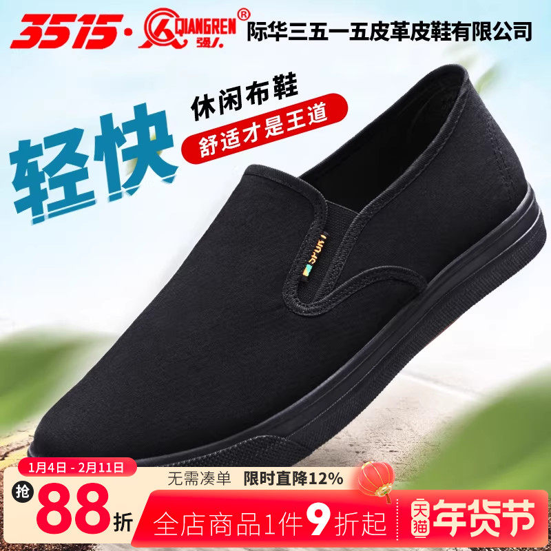 3515强人老北京布鞋男士夏季透气防滑休闲鞋黑色一脚蹬上班爸爸鞋