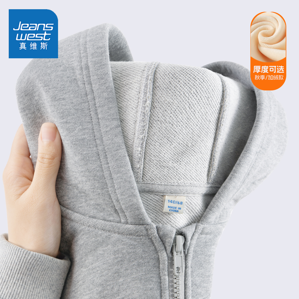 真维斯童装男童开衫秋冬款中大童时尚运动上衣男孩加绒连帽外套秋
