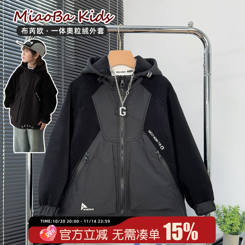 小象汉姆童装男童加绒外套秋冬款儿童一体绒拉链衫2025冬装新款潮