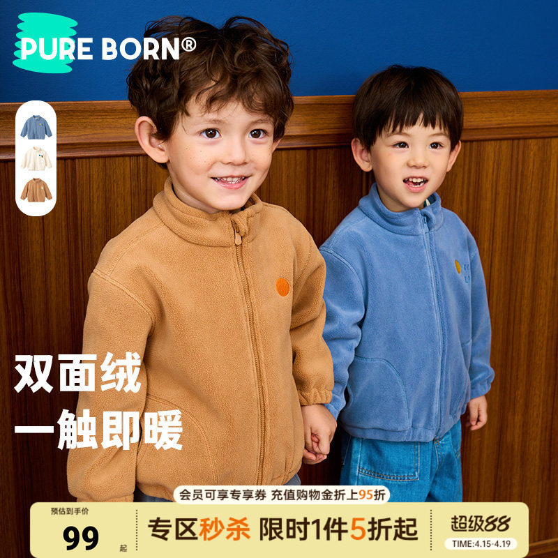 [抗静电双面绒]博睿恩男童女宝宝外套秋冬款加绒休闲拉链上衣童装