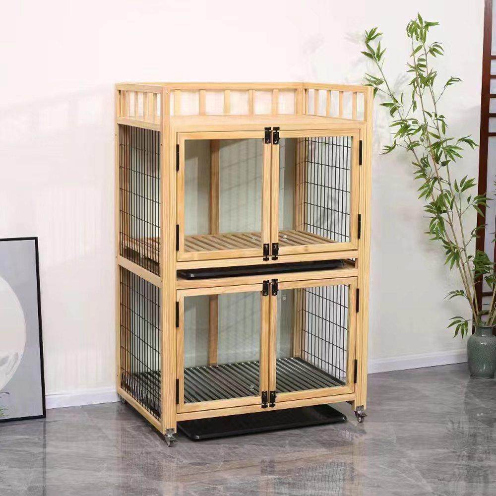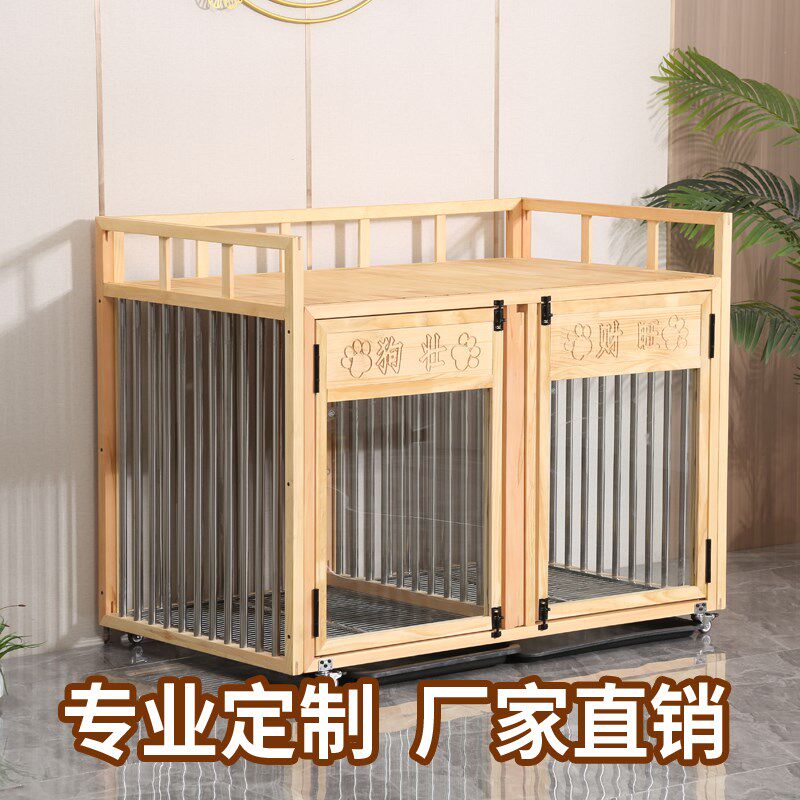 定制实木狗笼大中小型犬狗窝室内带厕所狗屋豪华子母笼玻璃狗别墅