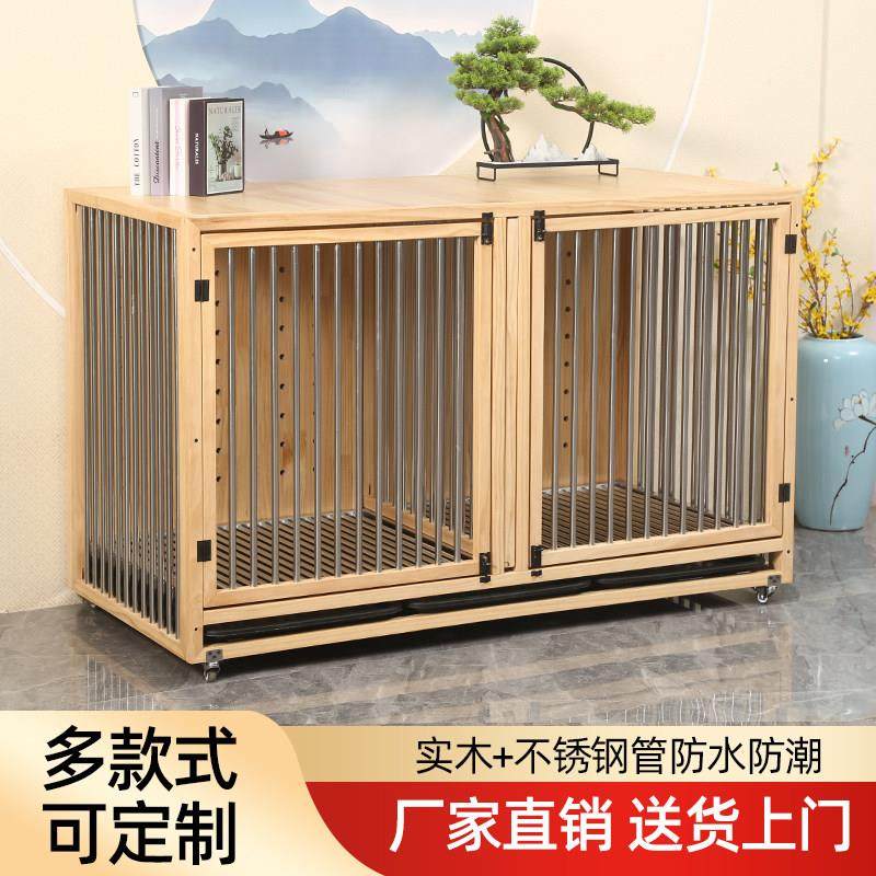 双层实木狗笼大中小型犬带厕所分离狗窝定制不锈钢家用室内狗别墅