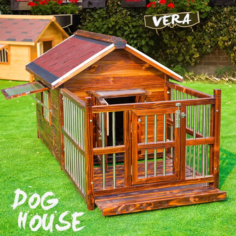 户外实木防雨狗屋狗房子室外防腐木狗笼狗窝大型犬室内木制狗舍屋