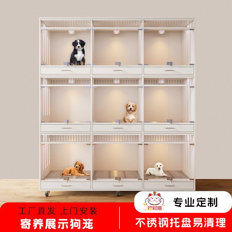 宠柜定制宠物狗寄养笼实木狗笼狗别墅展示柜宠物店狗柜展示寄养用