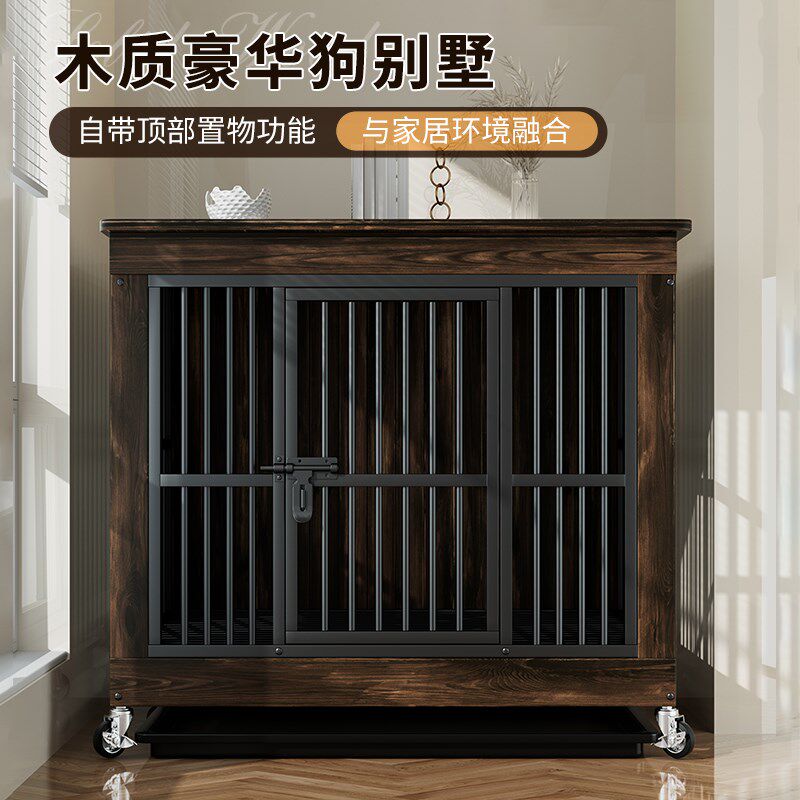 家具木狗笼子中型犬小型犬室内狗窝带G厕所边牧狗屋宠物大型狗笼