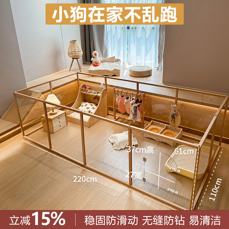 宠物围栏室内栅栏实木狗笼子透明亚克力无缝防钻小型犬兔子狗围栏