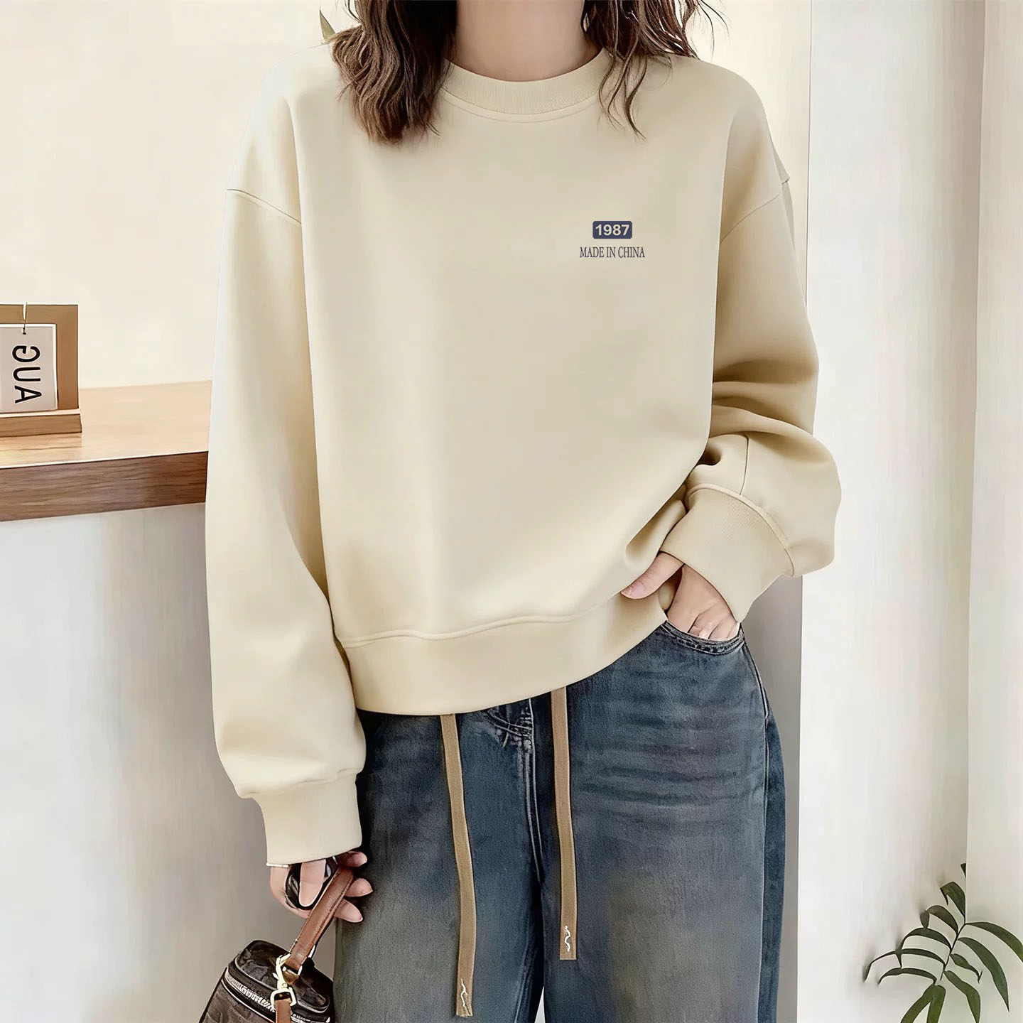 2025新款春秋冬棉质圆领卫衣女加绒加厚宽松显瘦时尚长袖休闲上衣