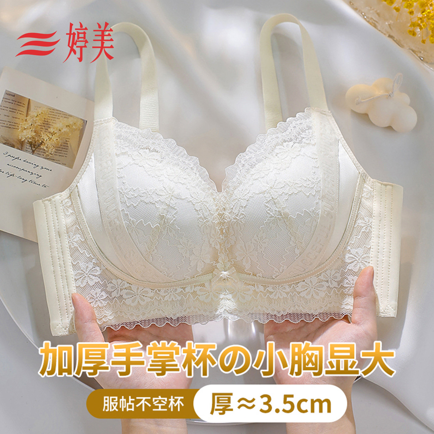 婷美加厚内衣女小胸聚拢无钢圈提拉防下垂调整型性感蕾丝显大文胸