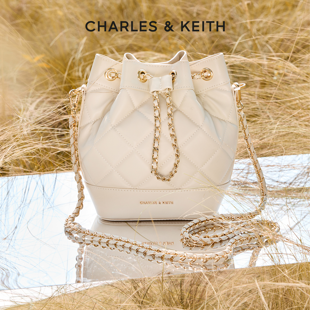 CHARLES&KEITH秋季女包CK2-10701506绗缝菱格链条水桶包双肩包女