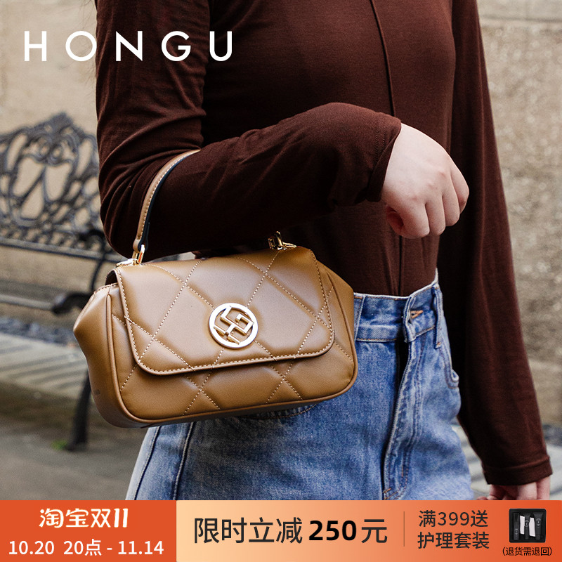 HONGU/红谷女包菱格链条包手提斜挎大容量单肩斜挎包休闲手拎包