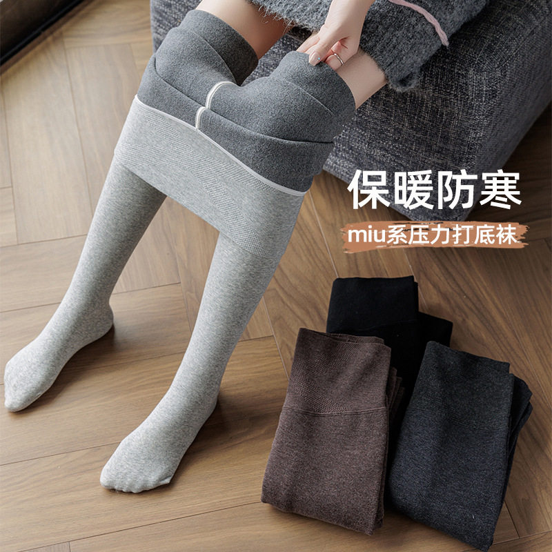 竖条纹压力打底袜女加绒一字裆连裤袜秋冬小脚九分无缝打底裤高腰