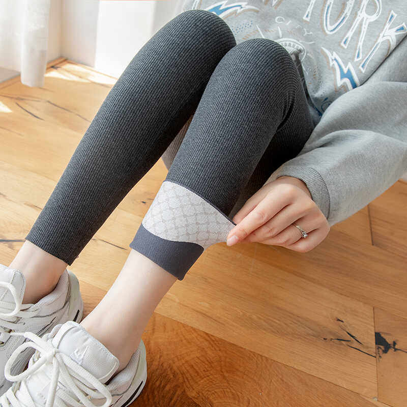 秋冬打底裤女不带袜子九分一体无缝高腰条纹小脚裤内搭无静电秋裤