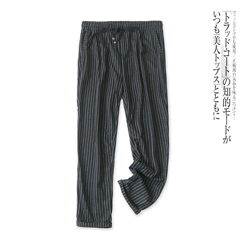 棉麻九分裤夏季百搭显瘦松紧腰带竖条纹小脚萝卜哈伦薄款休闲裤女