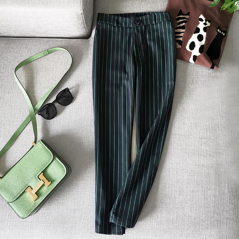 条纹西装裤女春装百搭修身小脚裤通勤直筒九分烟管休闲小西裤430