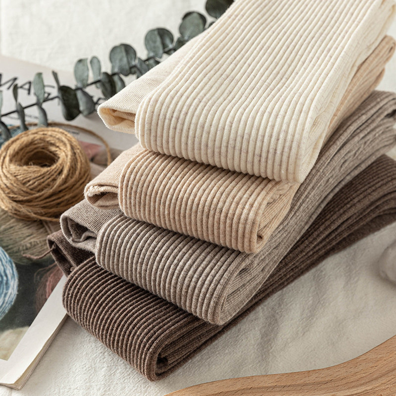 日系棉竖条纹打底裤春秋女外穿显瘦九分长裤裸肤色高腰薄款小脚裤