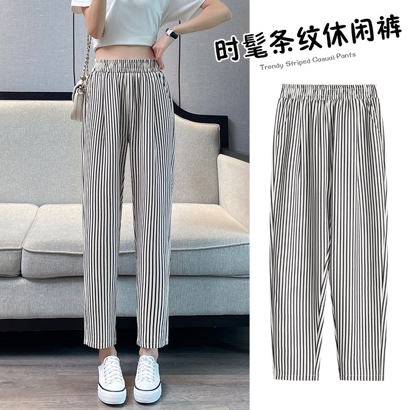 - 条纹哈伦裤九分裤女