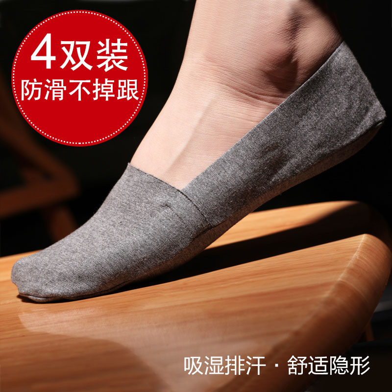 4双装男士冰丝船袜子隐形防滑豆豆鞋袜春夏薄款冰丝面料清凉 舒适