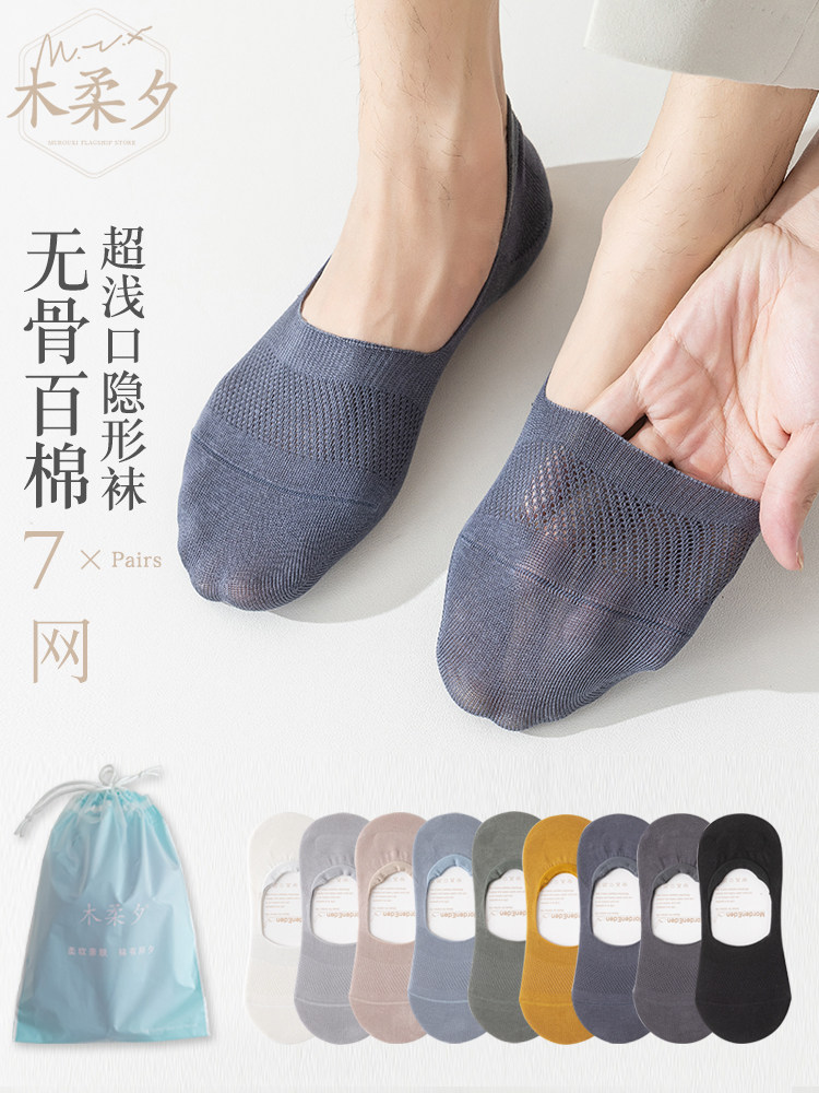 无骨船袜男纯棉防臭吸汗超浅口豆豆鞋隐形袜夏季网眼透气薄款袜子