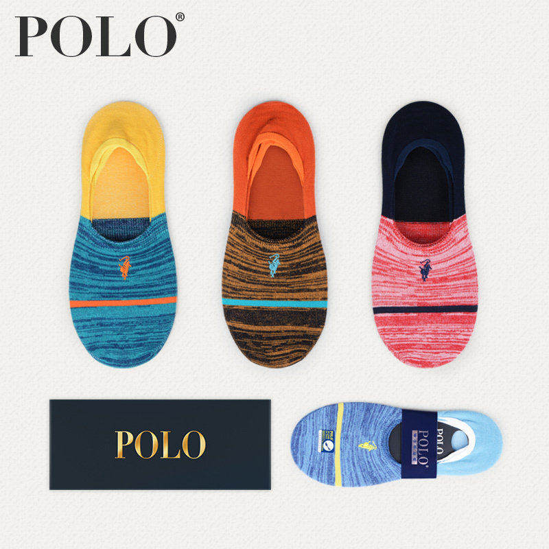 Polo潮牌袜子男春夏季超薄隐形豆豆袜船袜浅口条纹棉袜短袜个性男
