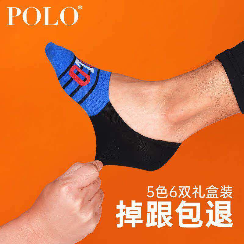 Polo袜子男夏季隐形袜薄棉袜短袜男豆豆不掉跟防滑船袜浅口男袜子