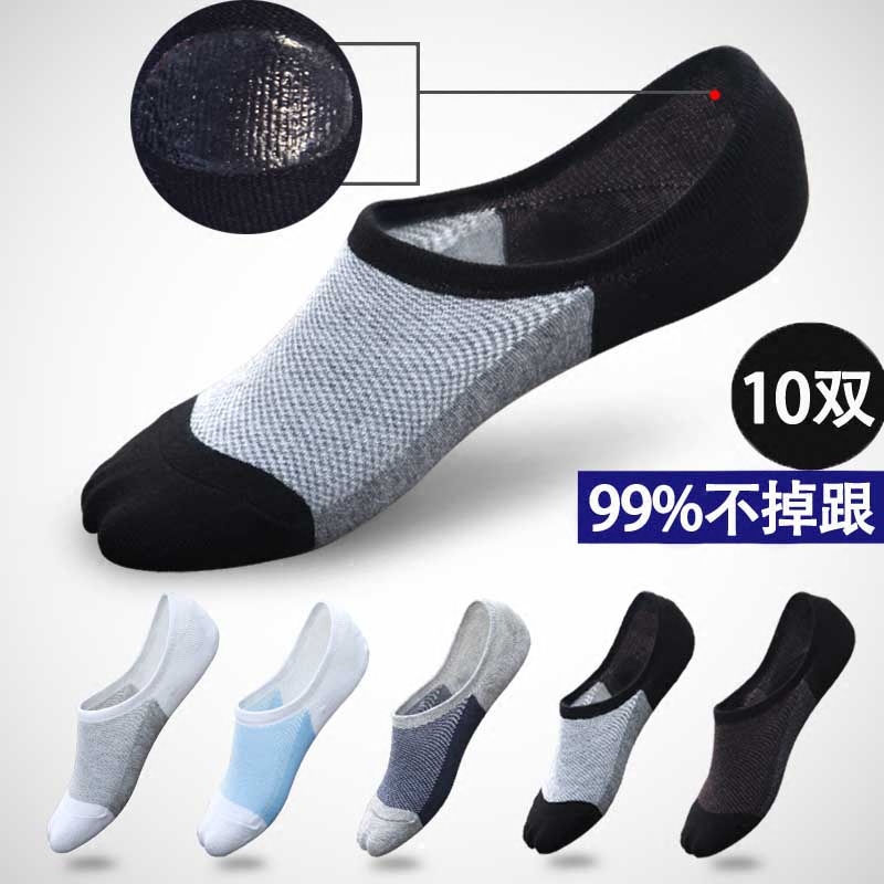 5双装夏季男士低帮硅胶防滑豆豆袜超短袜隐形浅口船袜薄款棉袜子