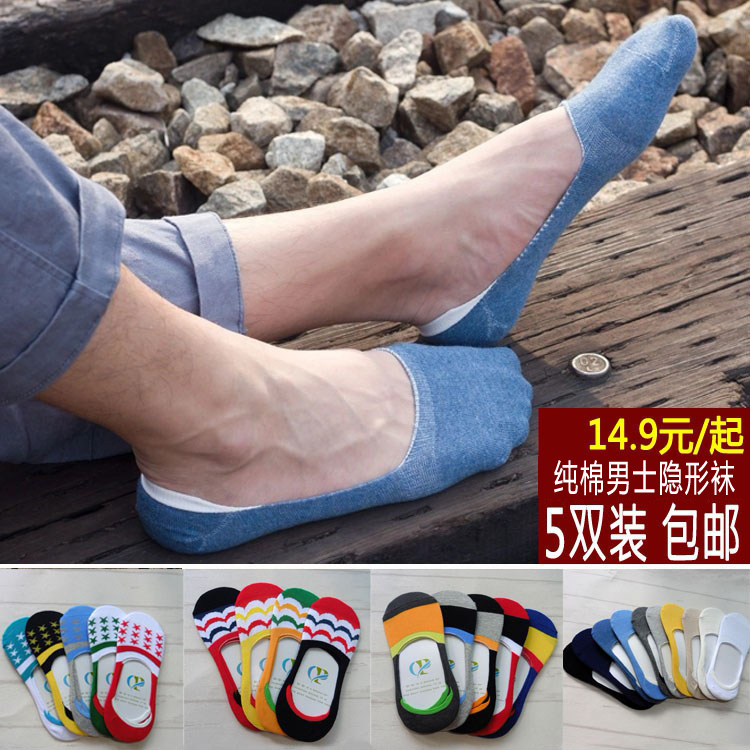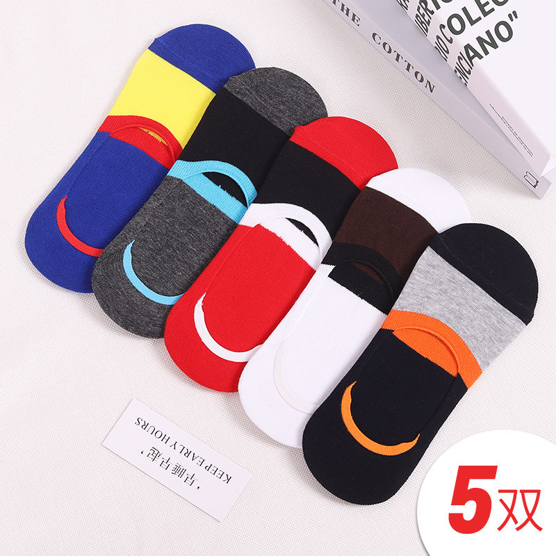 五双装船袜男士浅口低帮防滑豆豆袜子超短袜夏季隐形薄款纯棉袜套