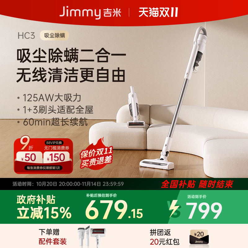 【国补】莱克吉米HC3无线吸尘器家用手持小型便携除螨猫毛宠物