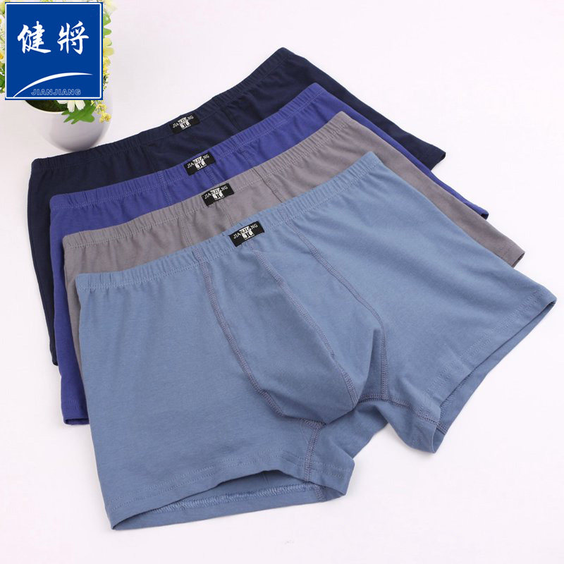 健将男士内裤平角裤窄边100纯棉青年透气中腰性感全棉U凸四角裤衩