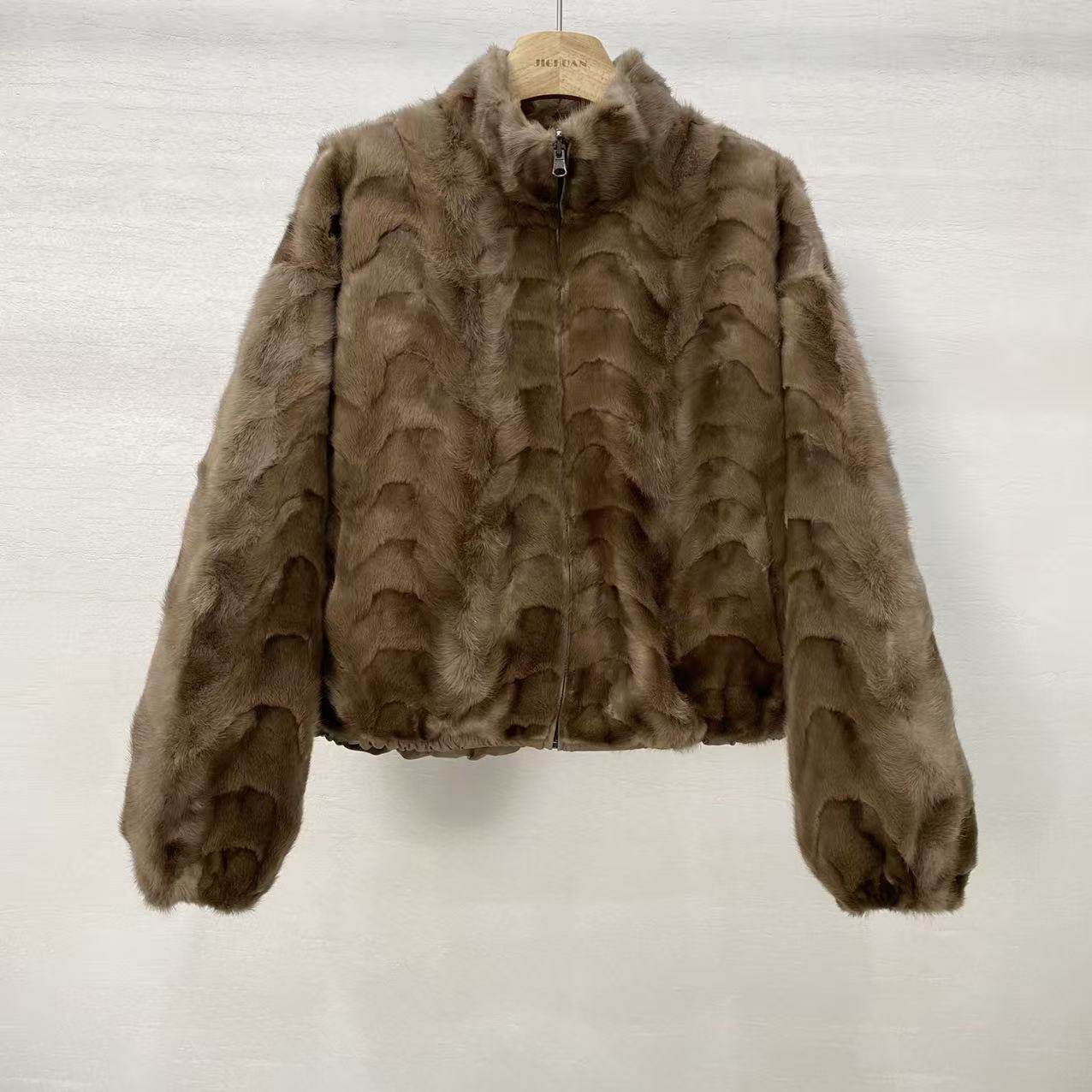 2025新款冬季皮毛一体短款仿水貂绒立领休闲环保皮草毛毛外套女