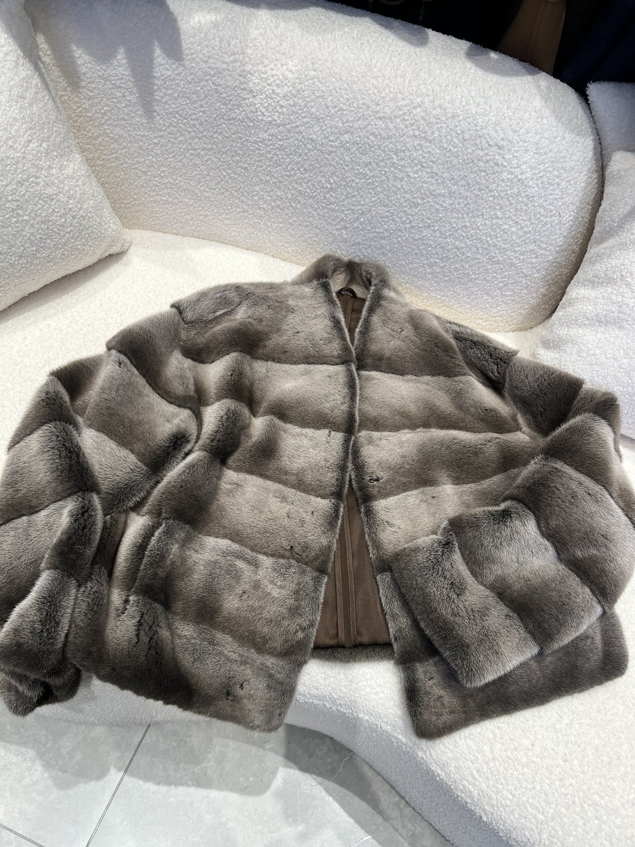 丹麦水貂绒波浪纹两面穿高立领A字版型夹克派克服休闲皮草短外套