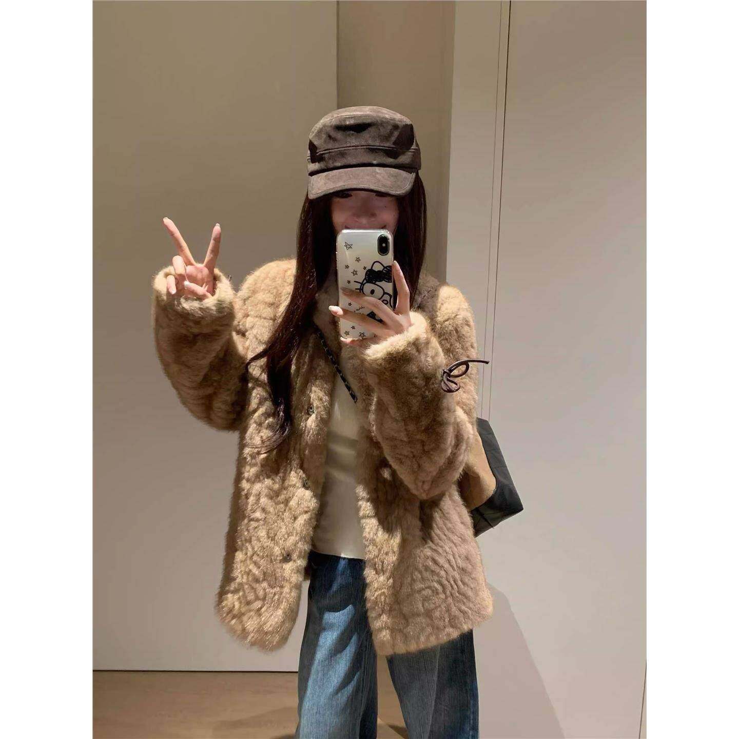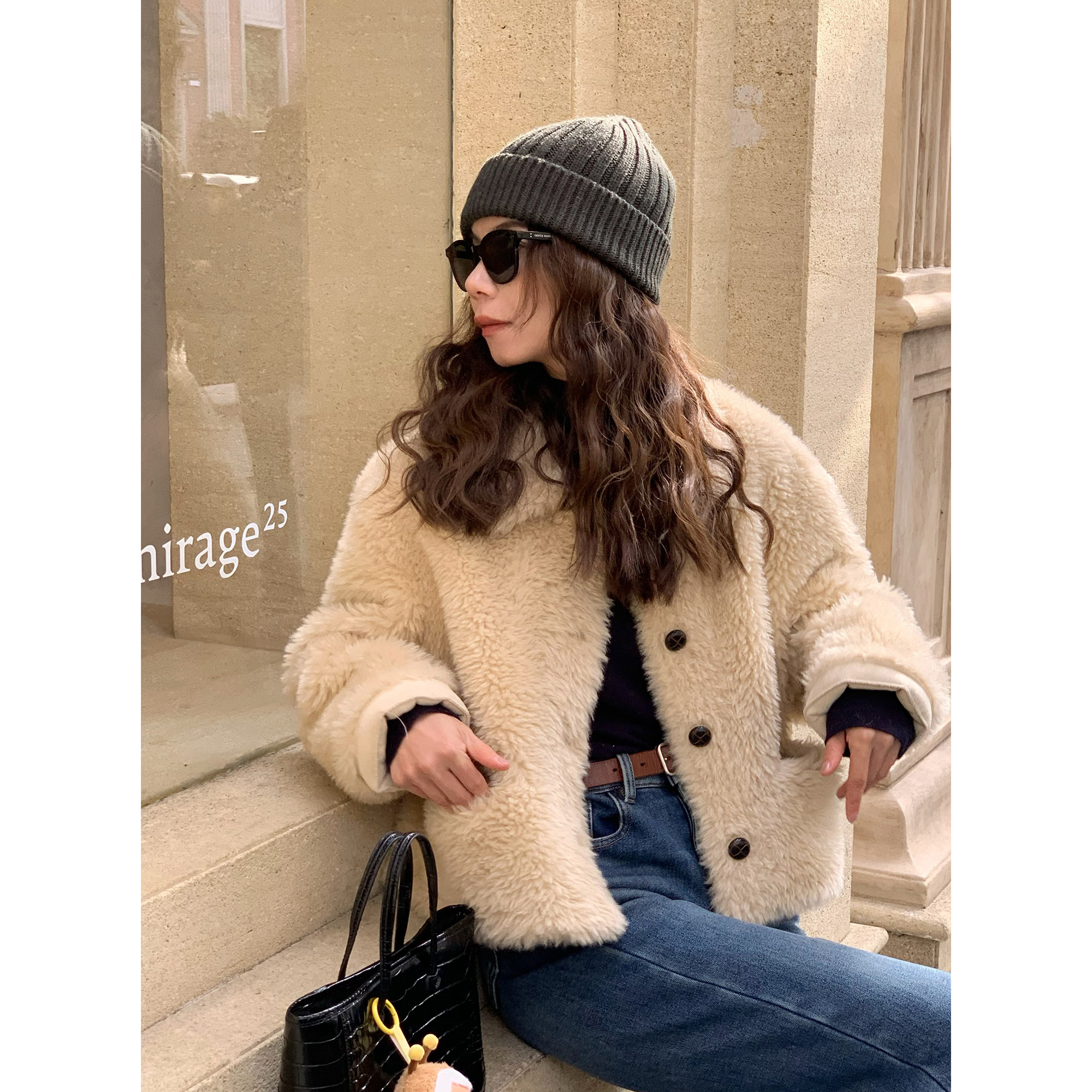2025新款环保羊羔毛宽松慵懒厚外套女短款冬保暖休闲皮草毛毛上衣