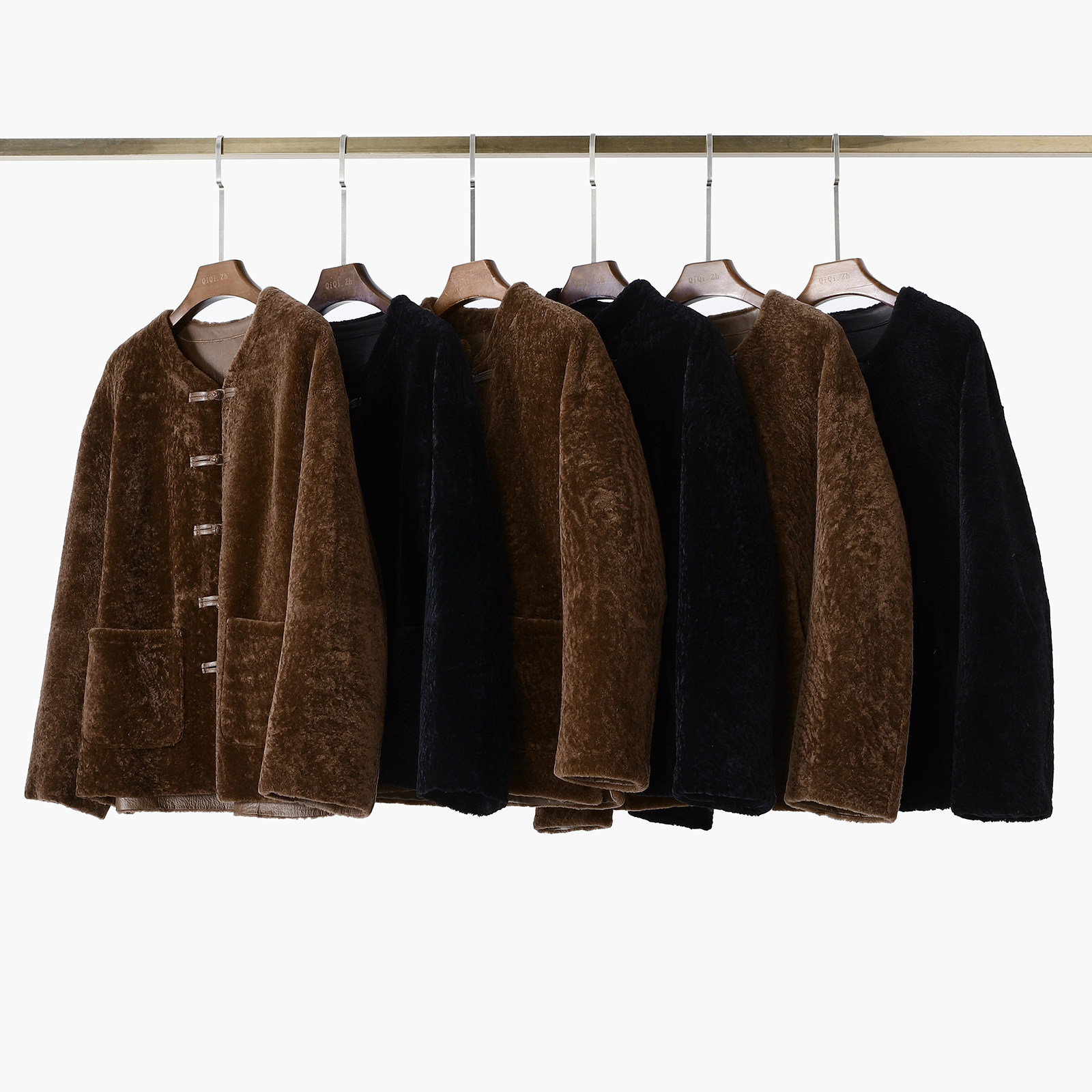 FANLE STUDIOS复古软糯绒面立领保暖羊卷毛宽松休闲皮草夹克外套