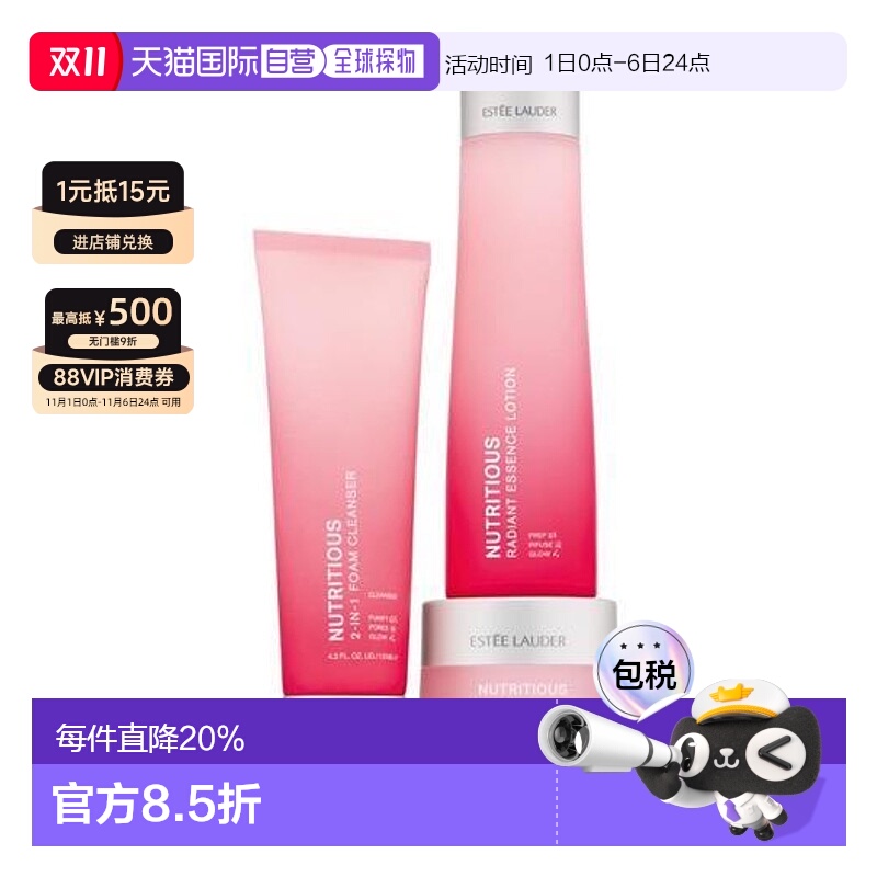 雅诗兰黛红石榴三件套洗面奶面霜爽肤水补水保湿提亮肤色百补正品