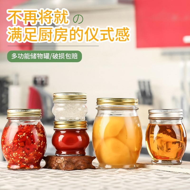18个复古甜品外卖打包玻璃杯无铅密封罐食品手工果酱辣椒酱玻璃瓶