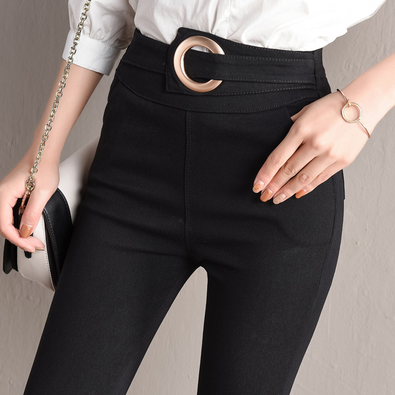 打底裤女外穿薄款铅笔黑色裤子女春秋修身显瘦九分高腰圆环小脚裤