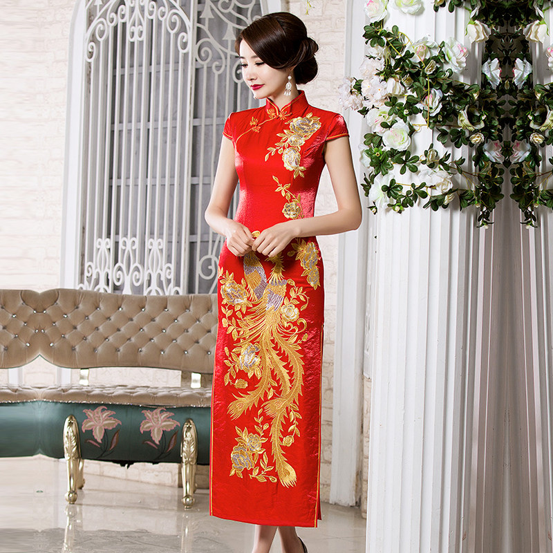 凤凰刺绣花旗袍年轻款新中式重工红色连衣裙妈妈走秀女秋装中国风