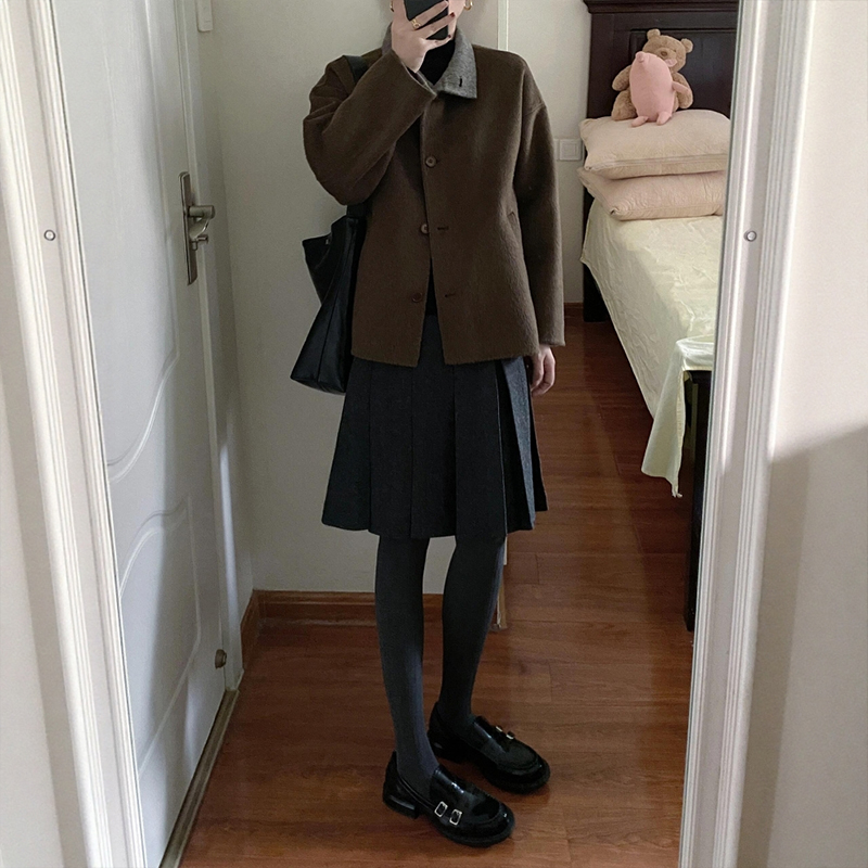 毛呢半身裙女秋冬高级感气质a字百褶裙高腰显瘦小个子百搭短裙子