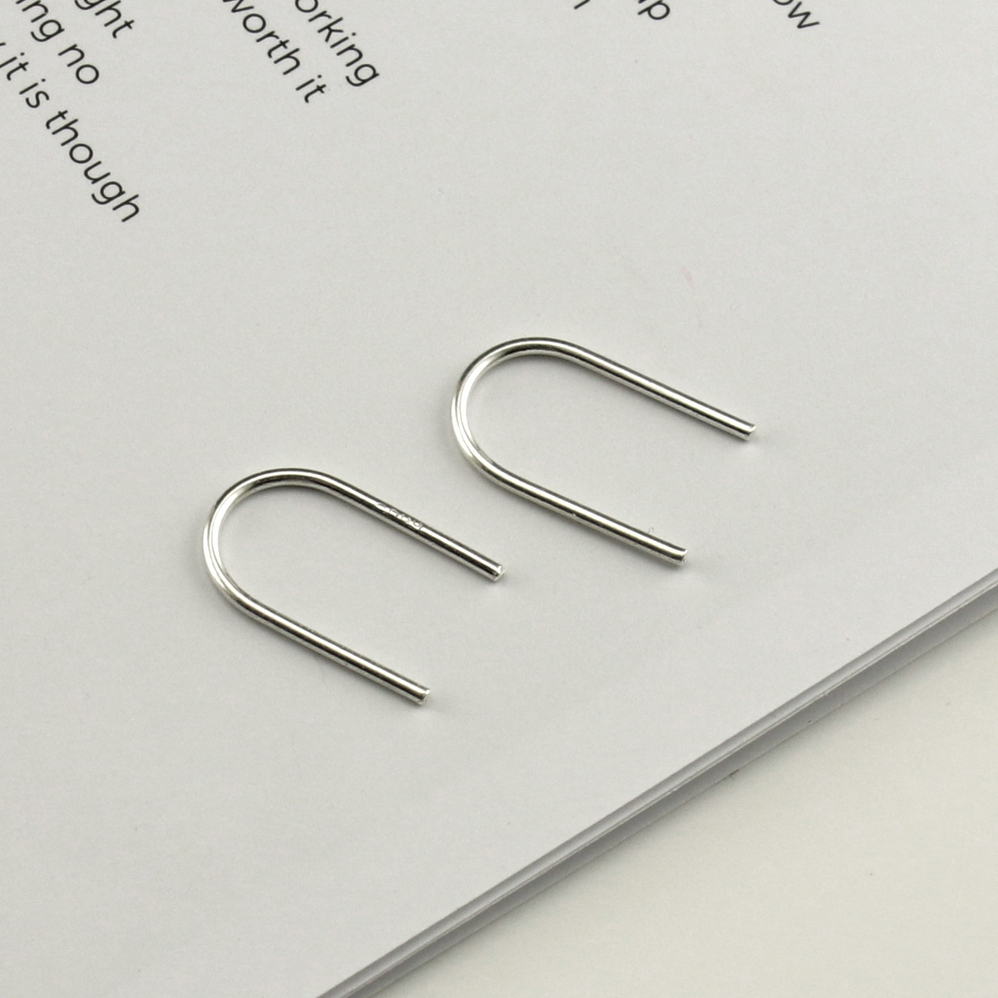 集泰弯钩双头耳骨耳钉999纯银女千足抗过敏防掉U字耳针养耳洞