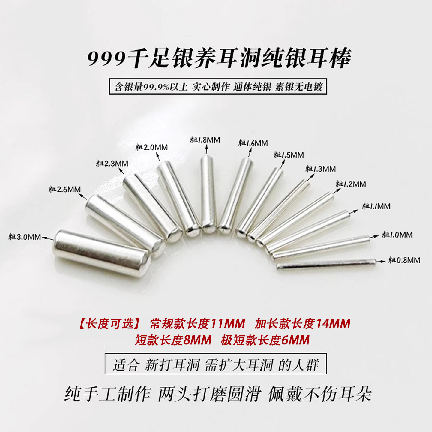 扩耳洞999千足银纯银耳棒简约粗耳棍养耳洞耳针男女银子耳钉耳饰