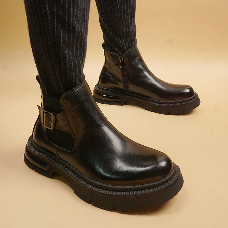 2023冬季厚底男靴子短靴韩版潮流男士增高马丁靴真皮中帮男靴皮靴
