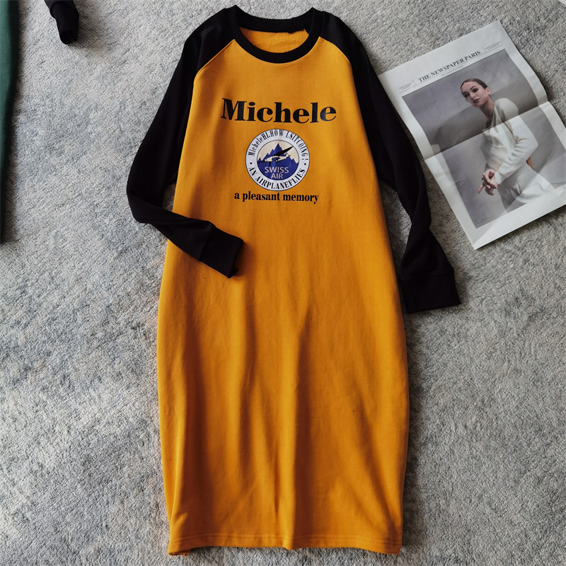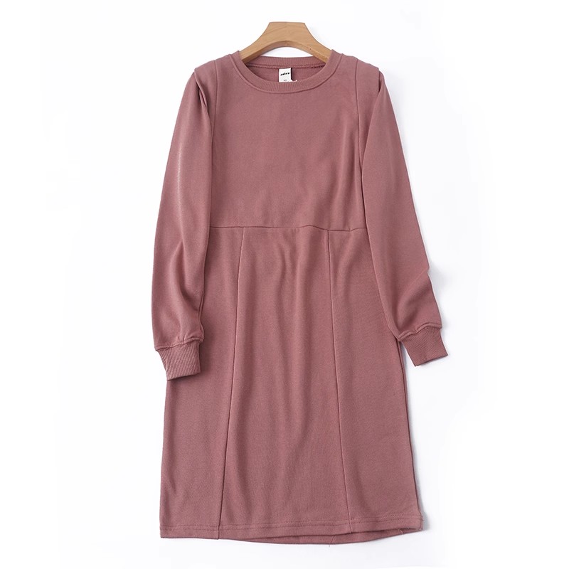 圆领毛圈中长款连衣裙 春季新款套头长袖打底棉女卫衣裙子 I/18-4