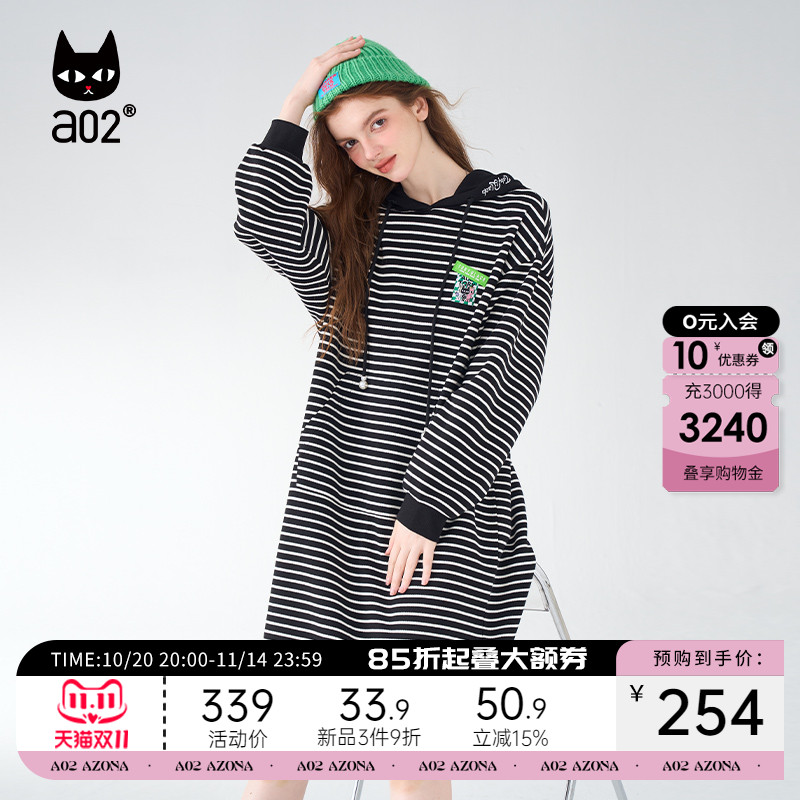 a02黑猫系列黑色假两件连衣裙女2025新款秋季宽松设计感卫衣裙子